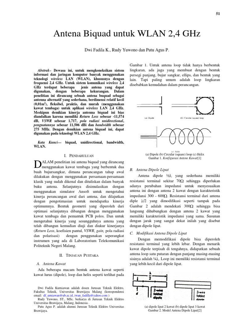 PERANCANGAN DAN REALISASI ANTENA BIQUAD YAGI DAN ANTENA BIQUAD OMNIDIRECTIONAL SEBAGAI REPEATER PASIF UNTUK MENINGKATKAN DAYA TERIMA SINYAL WCDMA - PDF Free Download