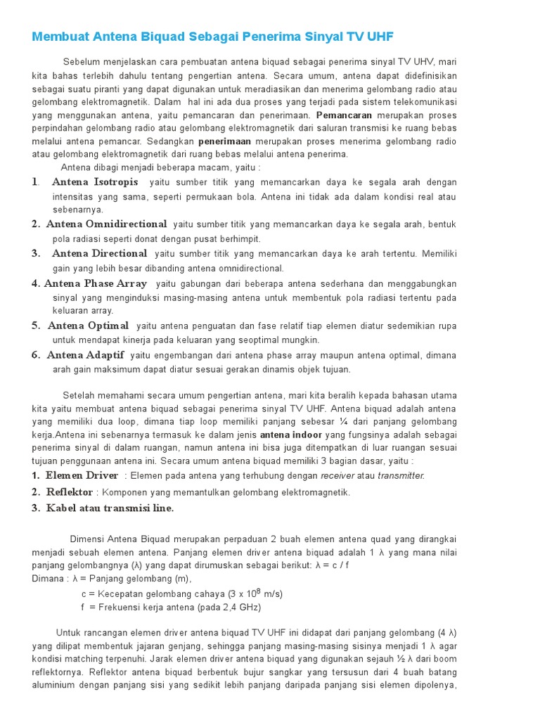 DOC) Selasa, 18 November 2014 Membuat Antena Biquad Sebagai Penerima Sinyal TV UHF | Apriyansah Alga - Academia.edu